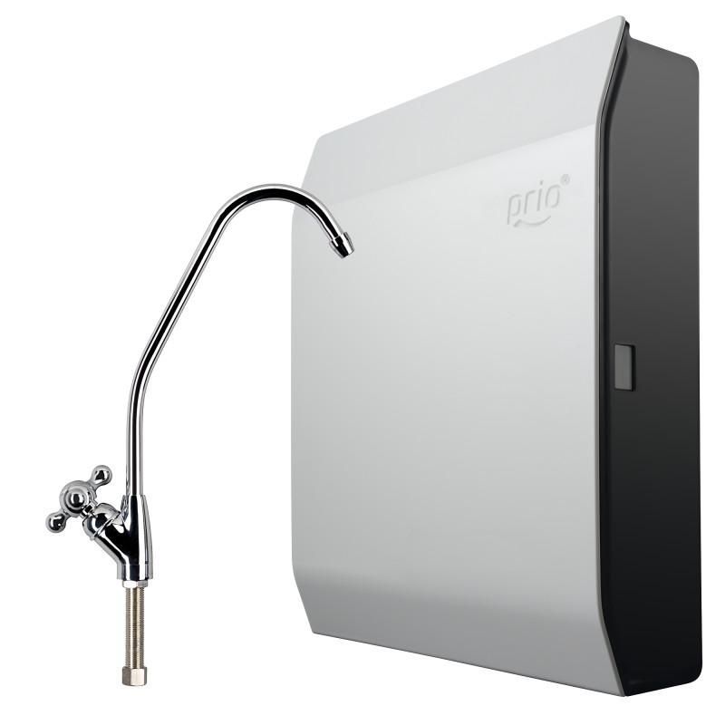 Укомплектован отдельным шаровым краном для очищенной воды. Металлические элементы крана изготовлены из сплавов, не содержащих свинец.