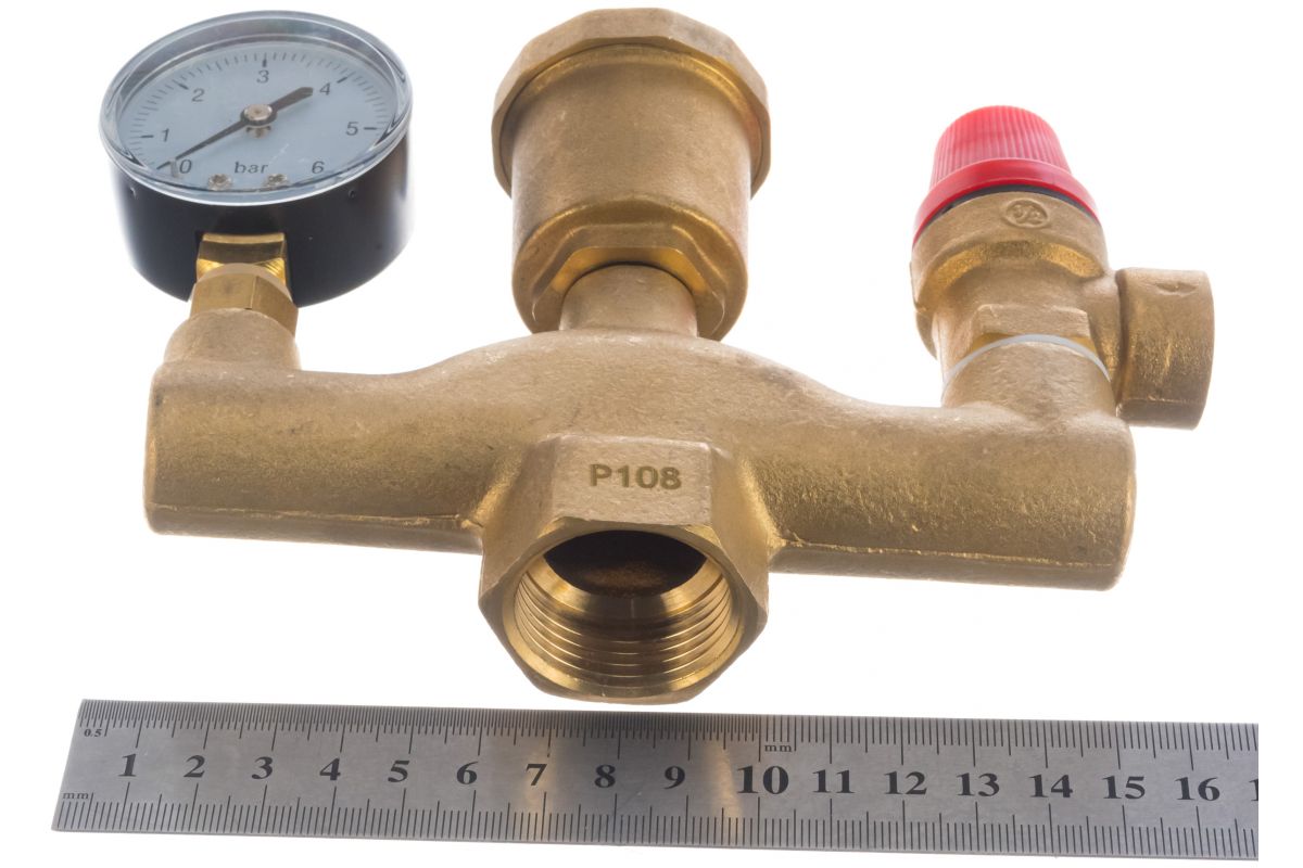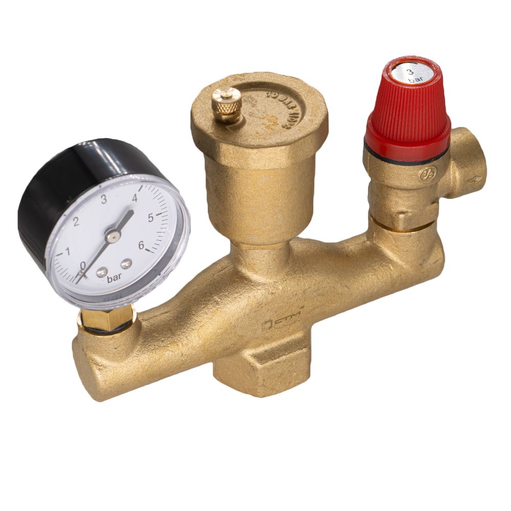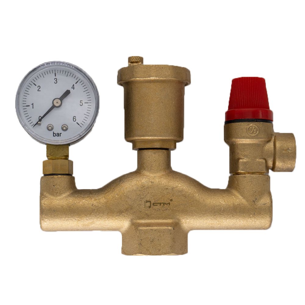 Представляет собой смонтированные на корпусе предохранительный клапан, радиальный манометр и автоматический воздухоотводчик.