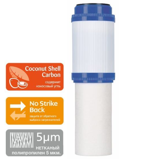 Очищает воду от механических примесей – песка, ила, ржавчины и т.п., а также от широкого спектра органических и неорганических растворенных примесей (свободного хлора, хлорорганических соединений, пестицидов, нефтепродуктов, тяжелых металлов, иных органических и неорганических соединений), устраняет неприятный запах воды, улучшает ее вкус.