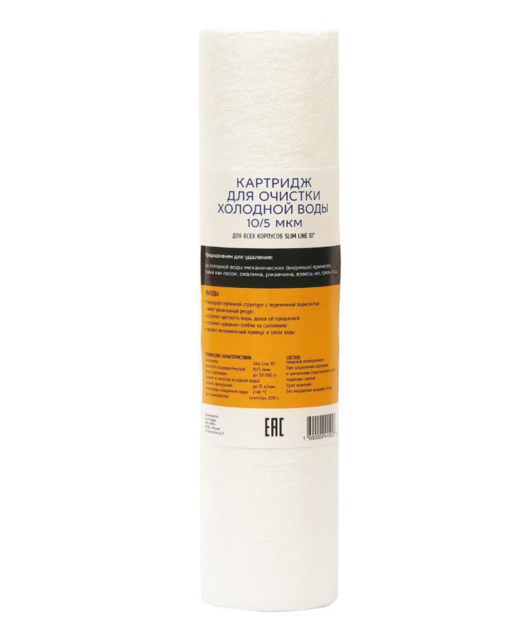 Устанавливать его можно как в магистральные фильтры (на всю квартиру/дом), так и питьевые системы (такие как тройные под мойку) – он подойдет во все корпуса типоразмера Slim Line 10” – это мировой стандарт фильтров для воды, который означает, что данный картридж имеет диаметр около 60мм (Slim Line значит 2,5 дюйма) и высоту около 250 мм (10 дюймов) Данный картридж достаточно тонкой очистки – 10 микрон. Картриджи из вспененного полипропилена более тонкой очистки встречаются только 1 и 5 микрон, все остальные грубее – 20, 50 микрон.