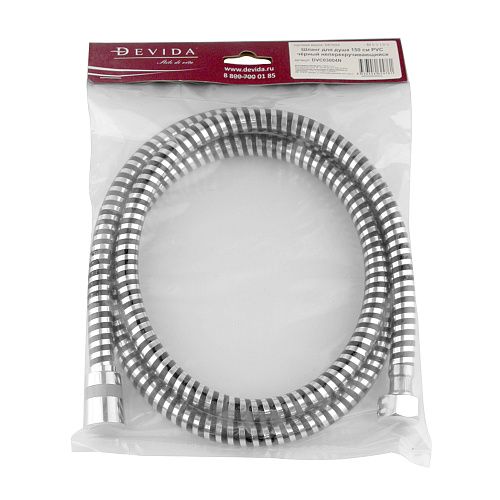 Шланг для душа 150 см PVC черный неперекручивающийся DEVIDA DVC03004N