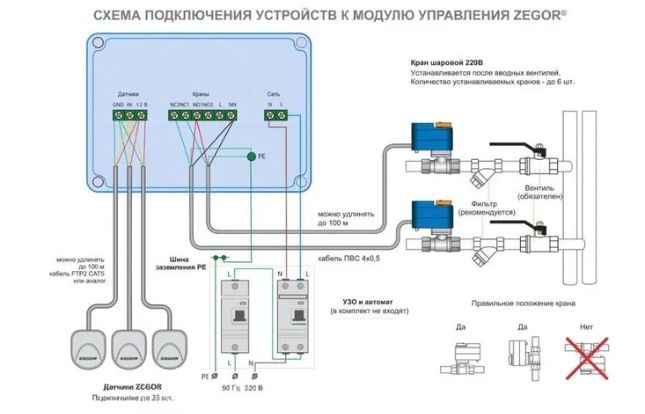 4. Автоматическое отключение воды при обнаружении влаги, что предотвращает затопление.
