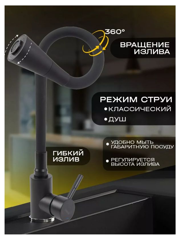 Смеситель для раковины Savol S-3002HM ЧЕРНЫЙ нержавеющая сталь